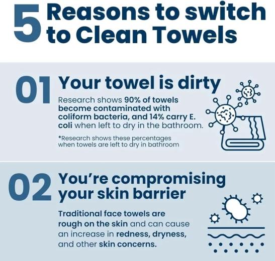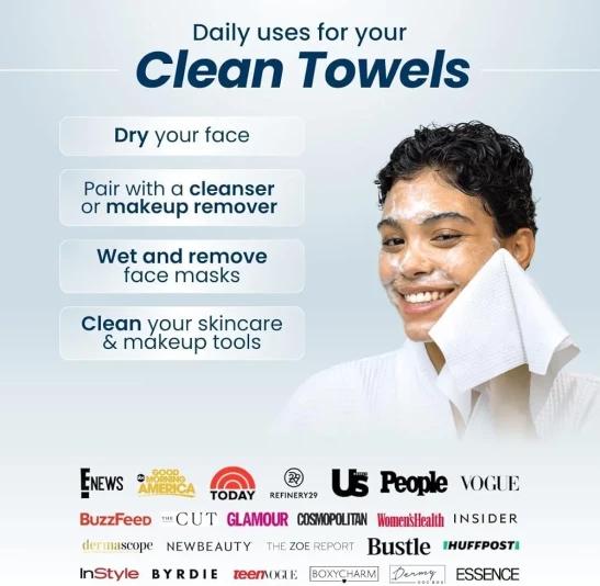 Clean Skin Club Clean Towels XL, 100% USDA Biobased Face Towel, Disposable Face Towelette, Makeup Remover Dry Wipes, Ultra Soft, 50 Ct, 1 Pack