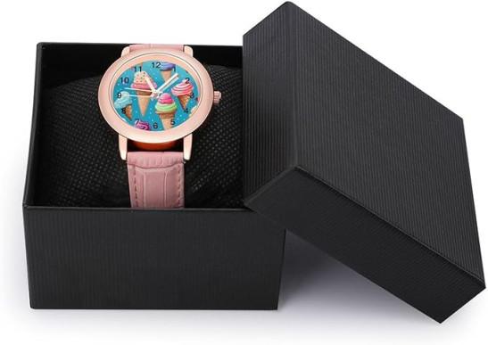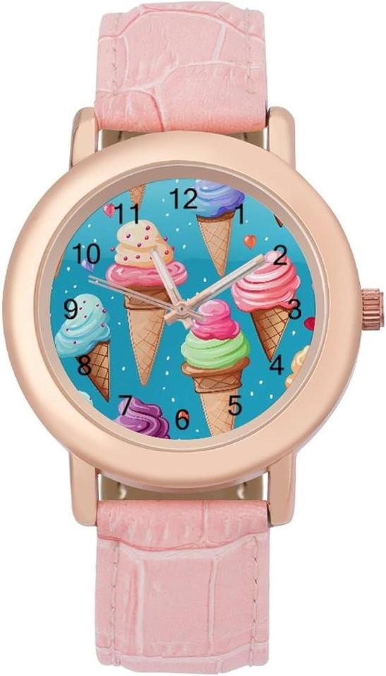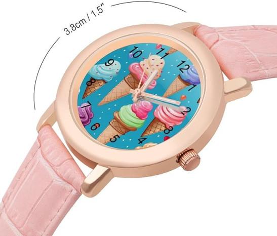 Colorful Ice Cream Fashion Watch For Women Easy Reader Novelty Round Watches Slim Quartz Casual Dress Wrist Watch Pink