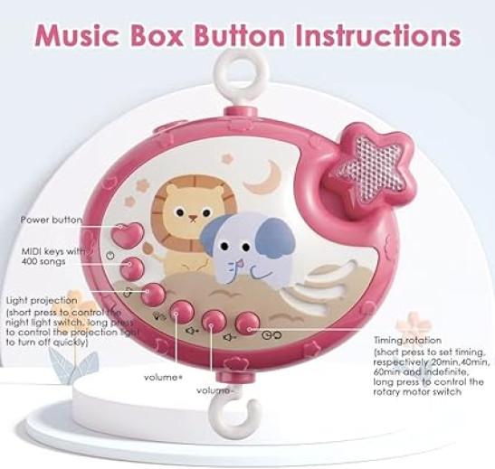 Cot Mobile for Babies, Baby Mobile for Crib, Hanging Projection Mobile with Music Box, Timing Function, Musical Mobile for Baby, Gifts for 0-12 Months Newborn