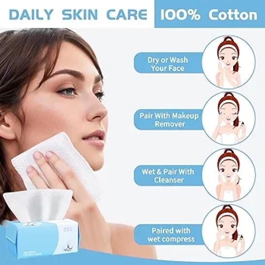 Cotton Facial Dry Wipes 100 Count, Deeply Cleansing Disposable Face Towel Cotton Tissue, Multi-Purpose for Skin Care, Make-up Wipes, Face Wipes and Facial Cleansing