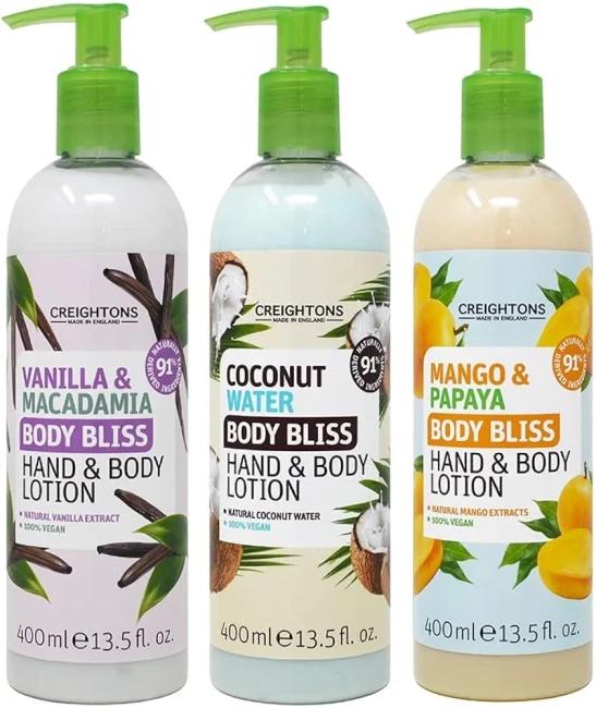 Creightons Body Bliss Deliciously Soft Skin Hand & Body Lotion Bundle - Made with 91% Naturally Derived Ingredients. Vegan Friendly. Cruelty Free
