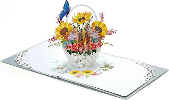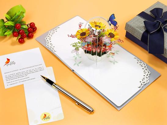 CUTPOPUP Sunflowers Basket - Birthday Cards for Women, Mothers Day Cards Pop Up, Flowers 3D Greeting Card, Anniversary Cards, Valentines Card UK
