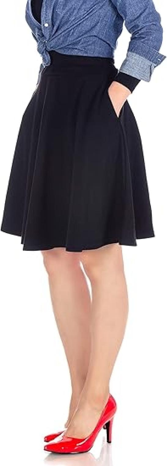 Dani's Choice Tidy Women's Cotton Blend High Waist Aline Full Flared Circle Skater Knee Length Skirt