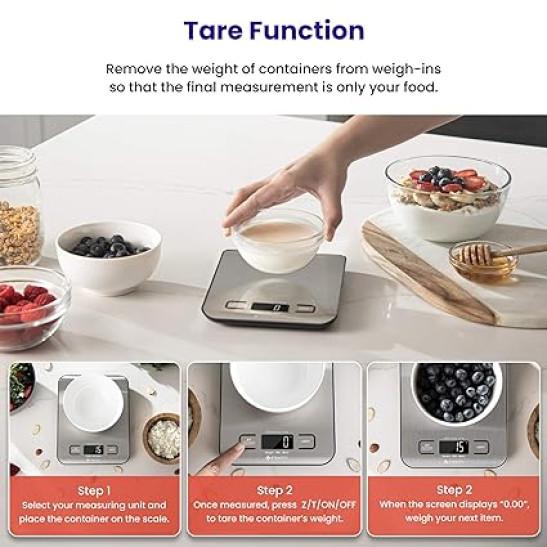 Digital Kitchen Scales, Professional Food Weighing Scales with LCD Display Premium Stainless Steel Food Scales