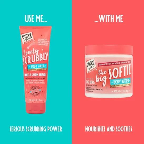 Dirty Works Lovely Scrubbly Shea Butter Body Scrub, Soft Exfoliating & Hydrating Skin Scrub, 250ml (Pack of 2)