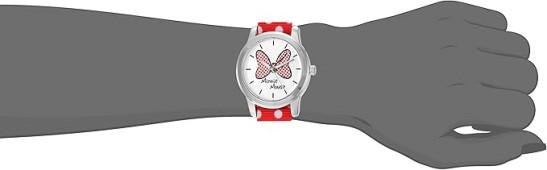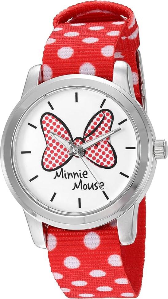Disney Minnie Mouse Women's Silver Alloy Watch, Reversible Red with White Polka Dot Nylon Strap, W002877