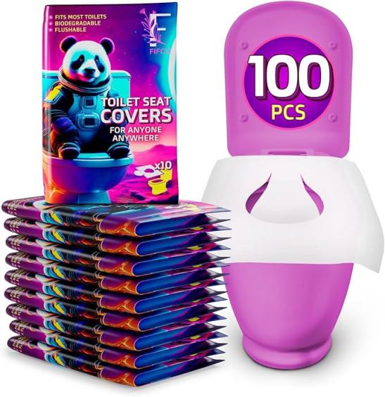 Disposable Toilet Seat Cover - Biodegradable and Flushable Toilet Seat Liners for Public Toilets | Compact White Toilet Seat Covers Disposable | One Size Fits All Travel Essentials Toiletries | FIFCO