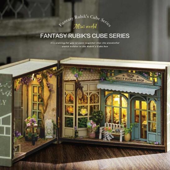 DIY Miniature Magic Cube Series(Molly Garden), Mini Wooden Dollhouse Kit with Furniture's, Creative Book Nook Kits Building Model with LED Light for Teenager & Adults