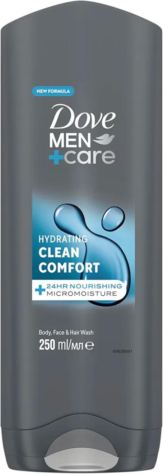 Dove Men+Care Hydrating Clean Comfort 3-in-1 Hair, Body and Face Wash Body Cleanser shower gel with 24 hour nourishing MicroMoisture technology for relaxed and re-energised skin 250 ml