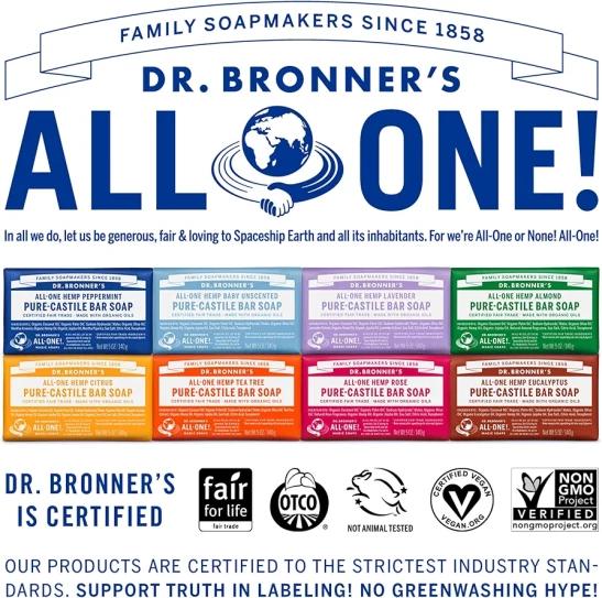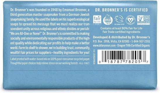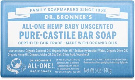 Dr Bronner's 3-in-1 Baby Unscented Pure-Castile Bar Soap, Made with Organic Oils with No Synthetic Fragrances, Used for Face, Body and Hair, Certified Fair Trade & Vegan Friendly, 140g Bar
