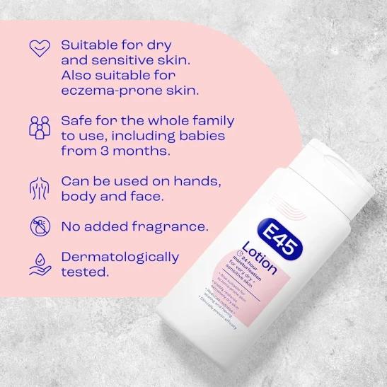 E45 Dermatological Moisturising Lotion 200 ml – Body Lotion – Daily Moisturiser for Long-Lasting Hydration for Dry Skin and Sensitive Skin