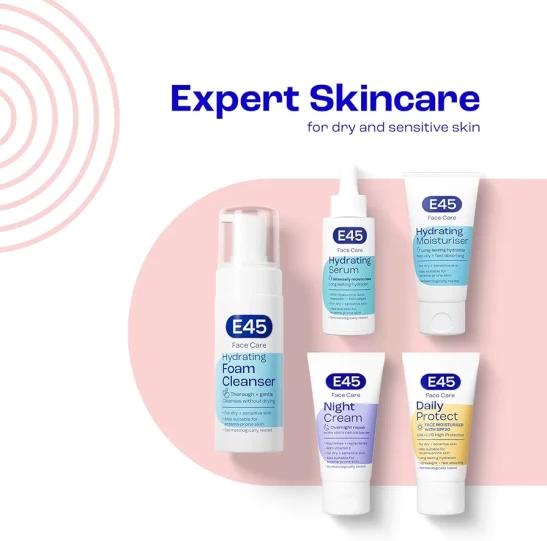 E45 Face Wash Foaming Cleanser – Daily Face Cleanser for Dry and Sensitive Skin – Gentle Facial Cleanser – Removes Excess Oil and Makeup for Clean, Soft Skin