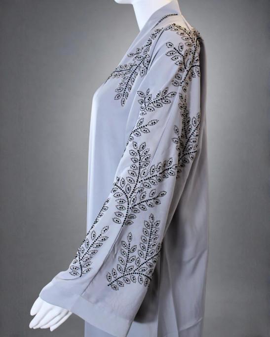 Elegant Ice Blue Embellished Abaya with Crystal Leaf Detailing Gown comes with belts and scarf (60)