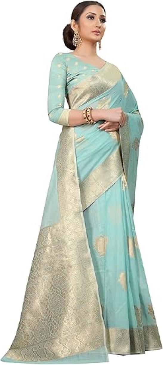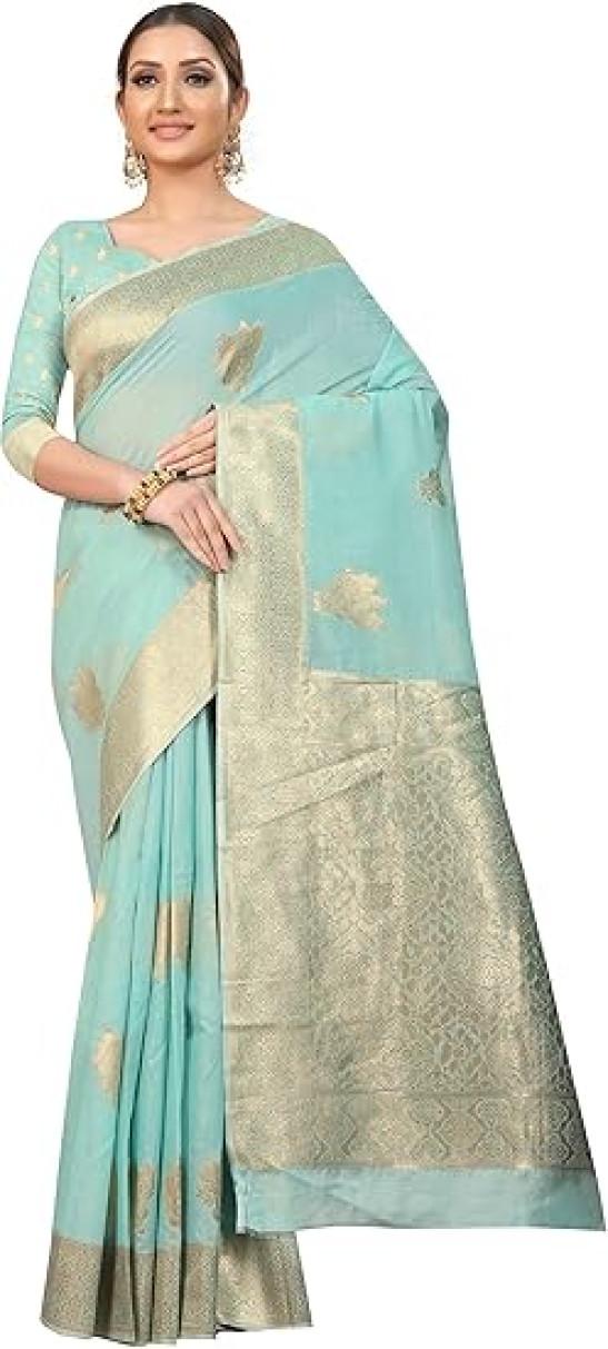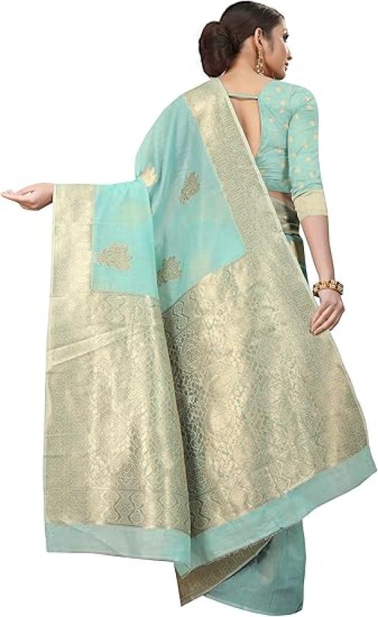 Enthone Pure Cotton Weave Silk Jamdani Saree (CTN_1_BLUE), Teal, FREE SIZE, Teal, One Size