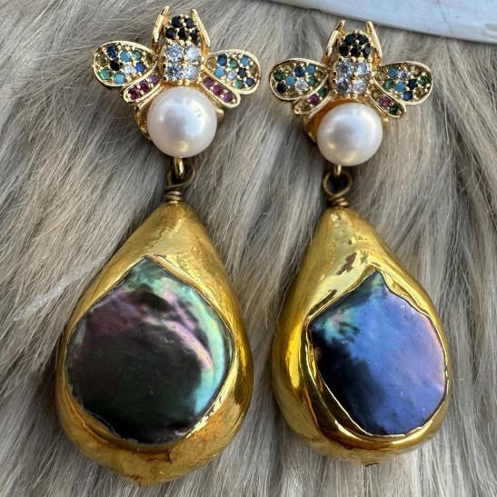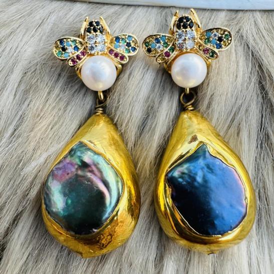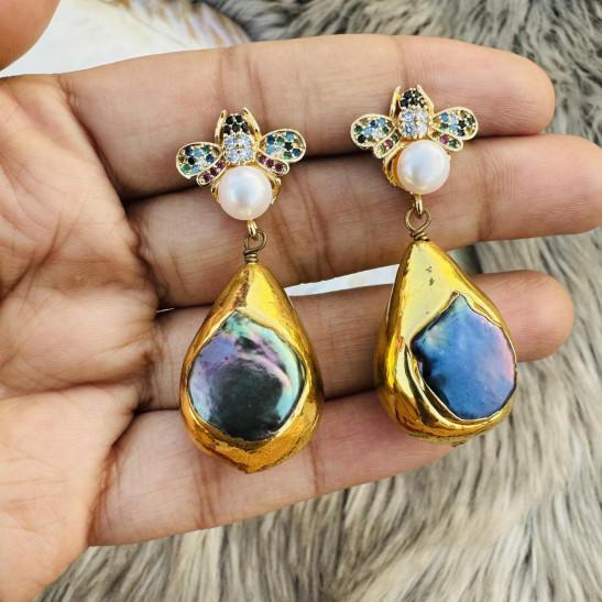 Exclusive Handcrafted Peacock-Green Pearl Earrings