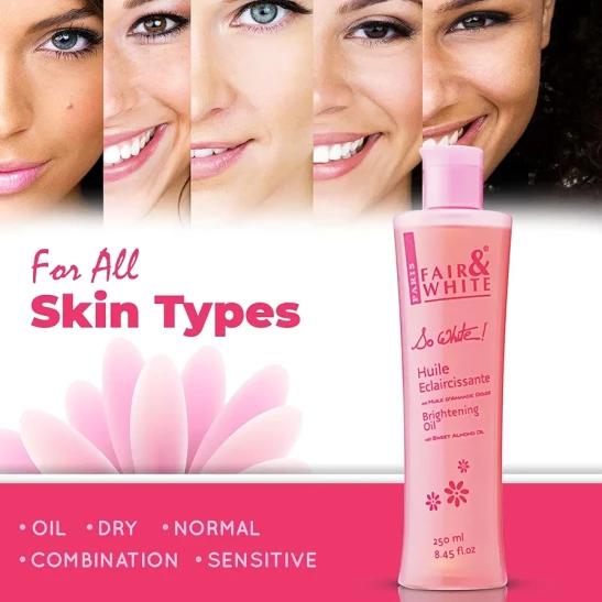 FAIR & WHITE So White Body Oil, 250ml / 8.45fl.oz - with Vitamin E, Almond Oil and 'Lumiskin', Hydrating Formula for Wrinkles, Dryness