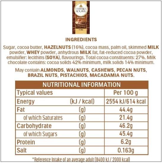 Ferrero Rocher Original Milk Chocolate Bar and Hazelnut, 90g