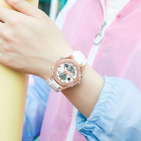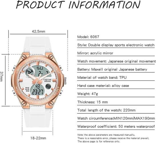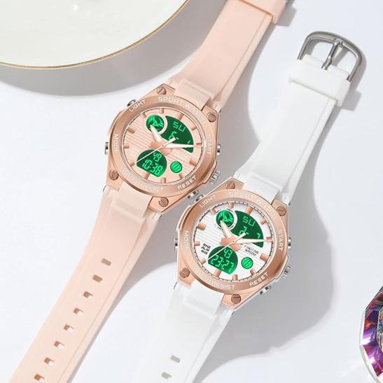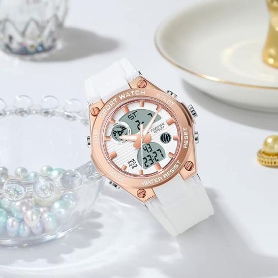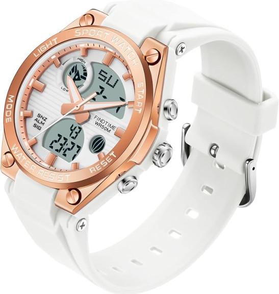 findtime Pink Watches for Women Digital 5Bar Waterproof Sports LED Backlight Wrist Watch Colorful Strap Analog Alarm