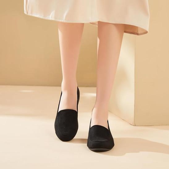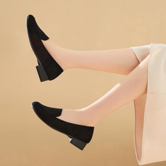 FINIWOR Women's Pumps Block Low Heel Pumps Shoes Faux Suede Ballet Flats Slip On Womens Closed Toe Shoes Dress Flats for Womens