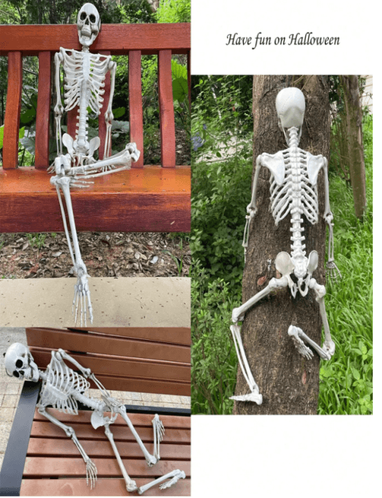 Flexible Jointed Lifelike Skeleton Decoration - Realistic Poseable Halloween Decor With Moveable Limbs & Spine, Heavy-Duty Plastic Construction