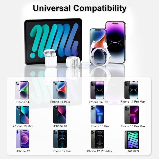 for Apple Fast Charger Plug and Cable for IPhone 14, 14 Pro, 14 Pro Max, 14 Plus, 13, 13 Pro, 13 Pro Max, 13 Mini, 12, 12 Pro, 12 Pro Max, 12 Mini, 11, 11 Pro, 11 Pro Max, 8, 8 Plus, SE, 20W PD Charge