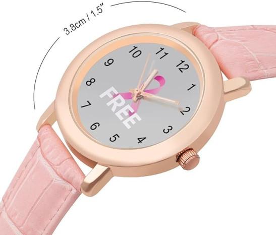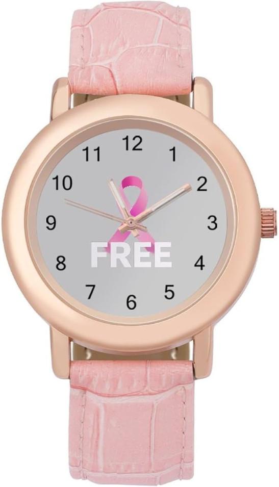 Free Breast Cancer Awareness Fashion Watch For Women Easy Reader Novelty Round Watches Slim Quartz Casual Dress Wrist Watch Pink