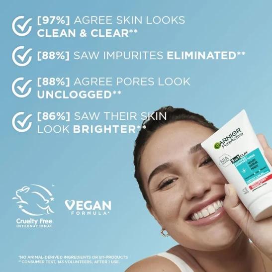 Garnier Pure Active 3in1 Clay Mask-Wash-Scrub 150ml, With Clay, Eucalyptus & Salicylic Acid, Face Cleanser For Oily Skin, Packaging May Vary