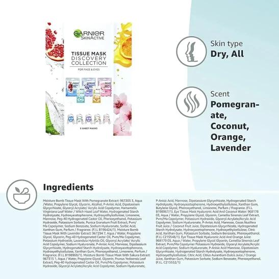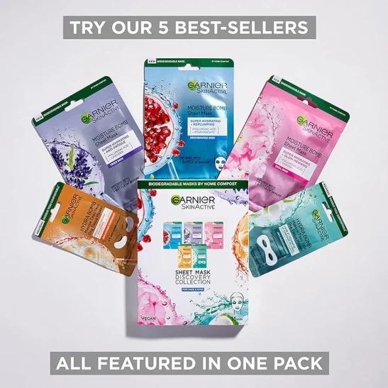 Garnier Sheet Mask Discovery Collection, Face & Eye Sheet Masks for Dehydrated, Dull and Tired Skin