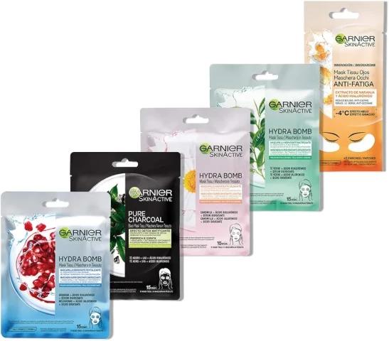 Garnier Skin Active Hydra Bomb 5 Skin Care Fabric Masks Moisturising Purifying Soothing Mattifying and Anti-Dark Circles Face and Eye Contour - Set of 5