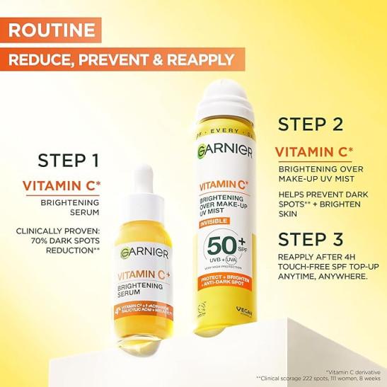 Garnier Vitamin C Brightening Over Make-Up UV Mist, Vegan - 75ML