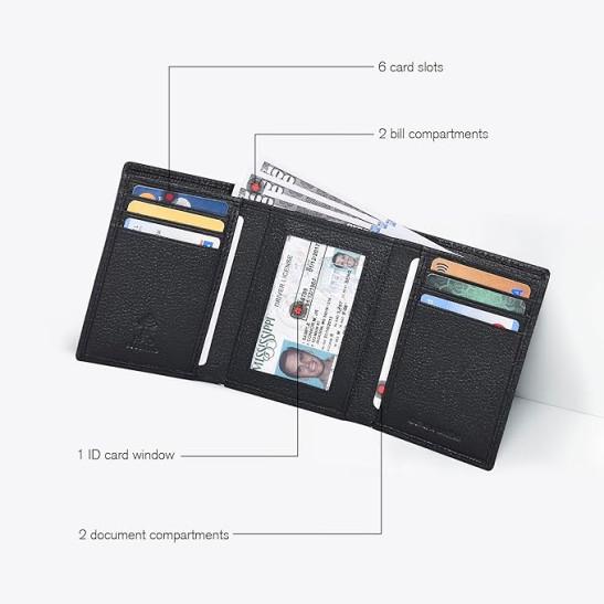 Genuine Leather Front Pocket Trifold Wallet for Men