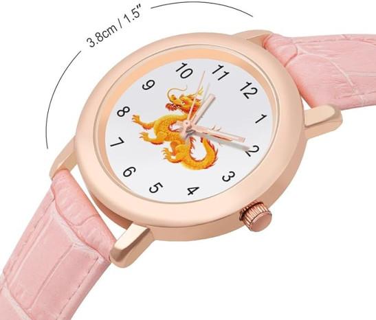Golden Dragon Fashion Watch For Women Easy Reader Novelty Round Watches Slim Quartz Casual Dress Wrist Watch Pink