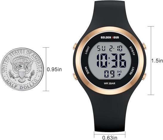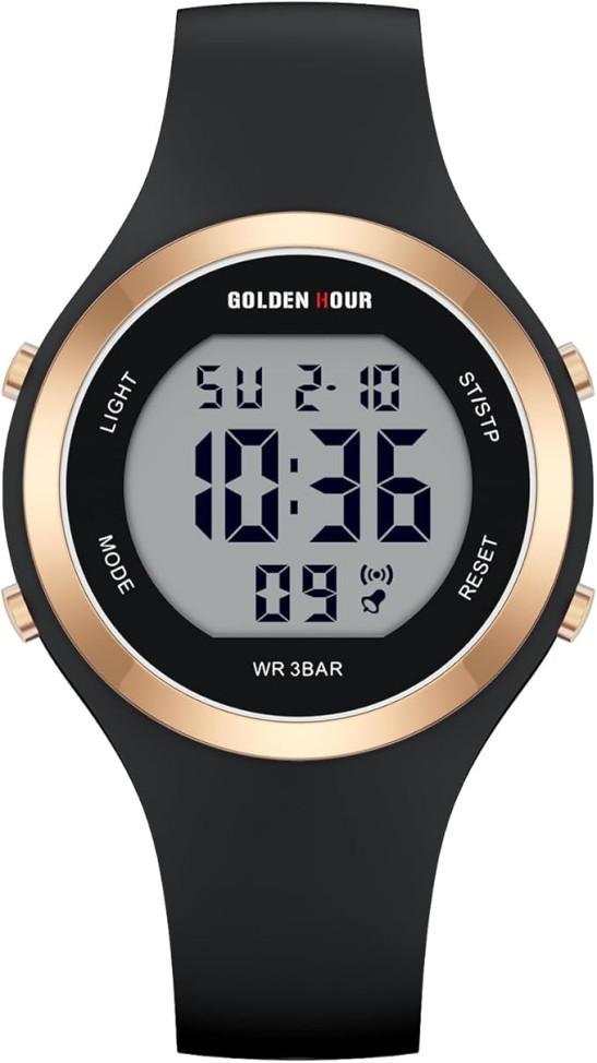 GOLDEN HOUR Digital Ladies Watches 5ATM Waterproof Sport Womens Watch with Luminous/Date/Week/Month Chronograph, Silicone Strap Swimming Watch for Women