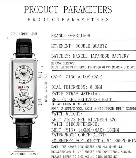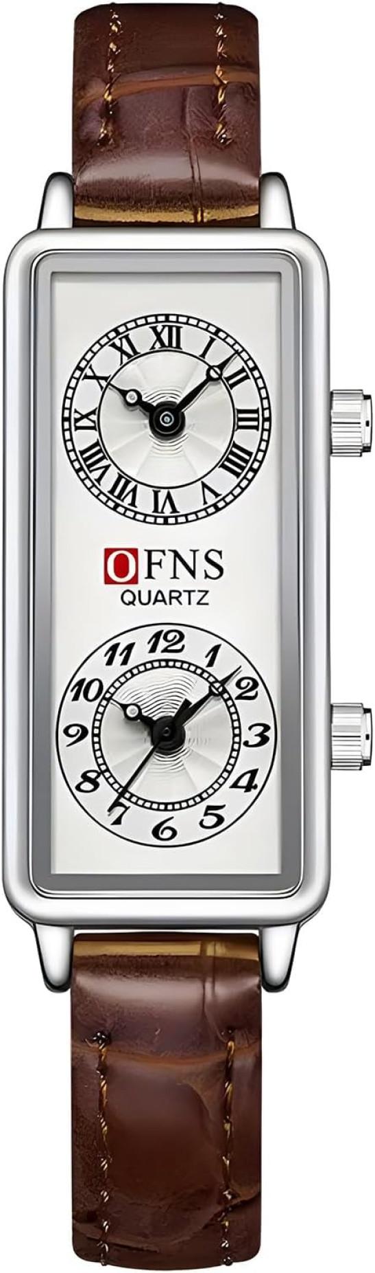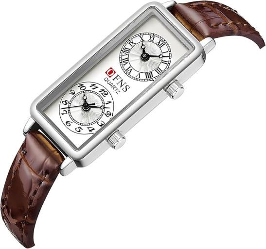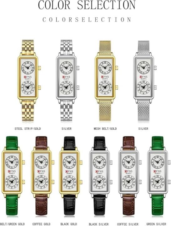 Gosasa Fashionable Women's Quartz Watch, Rectangular Dial with Dual Time Zones, 30m Water Resistant