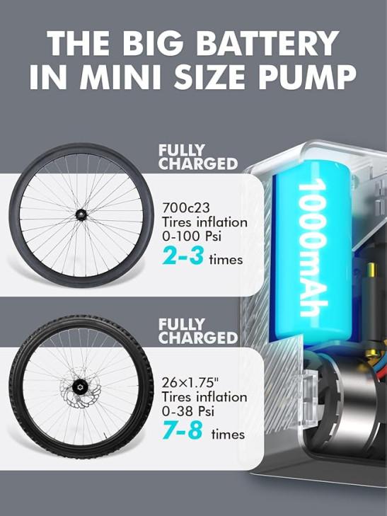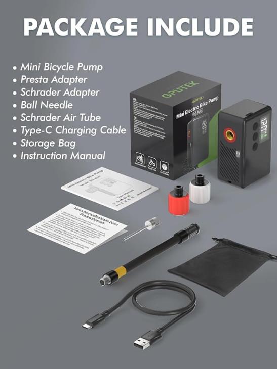 GPUTEK Mini Electric Bike Pump, 120 PSI Cordless Portable Bicycle Pump with Pressure Gauge