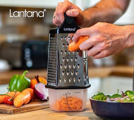 Grater with Container – Hand held Grater/Slicer/Zester, Includes Fitted Measuring Container & Lid