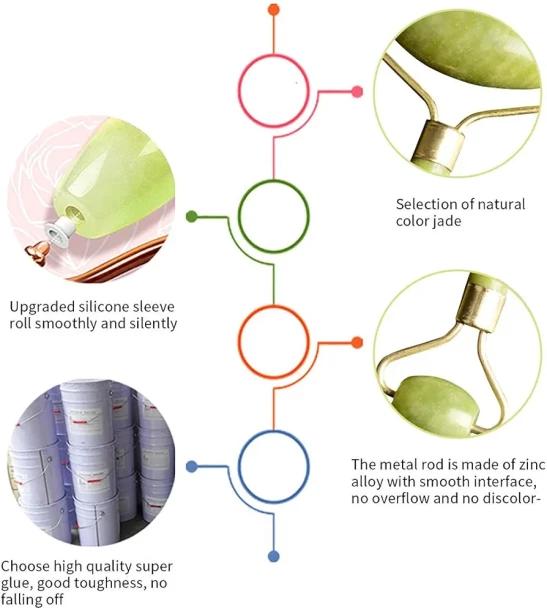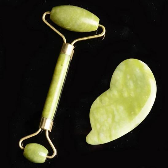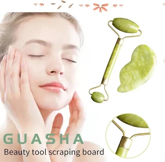 Gua Sha Massage Set, Jade Roller, Face Roller for Eye Puffiness Treatment, Skin Tightening, Rejuvenate Face & Neck, Natural Green Slimming Massager (A)