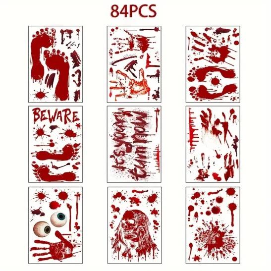 Halloween Decorations, 84pcs Halloween Window Clings, 8 Sheets Bloody Handprint