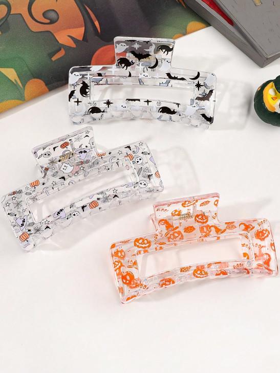Halloween Pumpkin Ghost Bat Star Moon Printed Translucent Shiny Hollow Medium Hair Claw