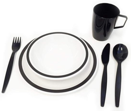 Harfield Black & White Duo Camping Tableware Set - Reusable Virtually Unbreakable Polycarbonate Plastic