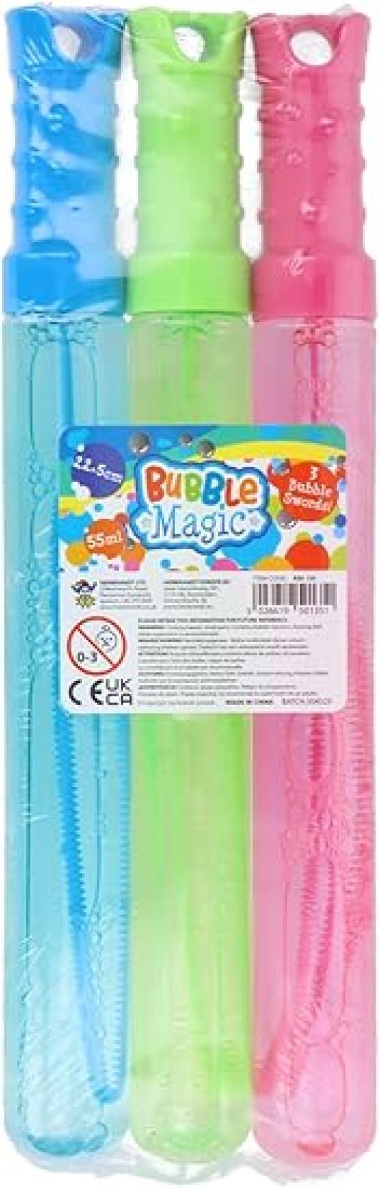 Henbrandt Pack of 3 Bubble Swords 3 Assorted Colours 55ml Kids Toys Summer Fun Children's Bubble Wands Beach and Garden Party Outdoor Games Bubbles for Kids Party Bag Fillers for Boys and Girls