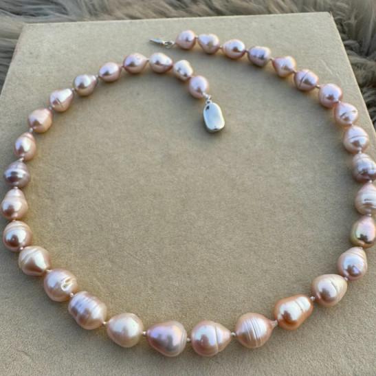 High luster metallic Natural drop shaped peach to lavender color Sea-Water Pearl Necklace