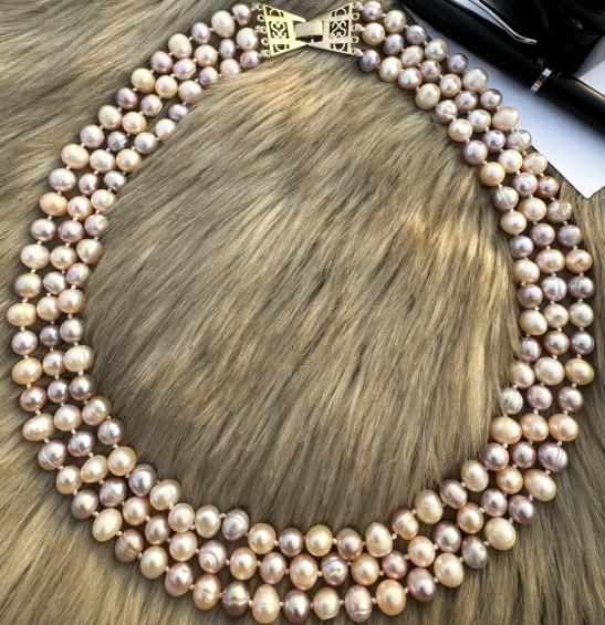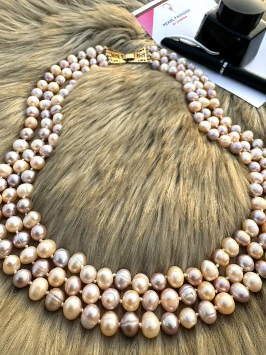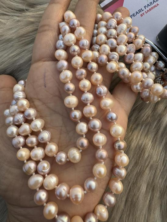 High luster Peach to Pink-Lavender color freshwater Pearl Necklace