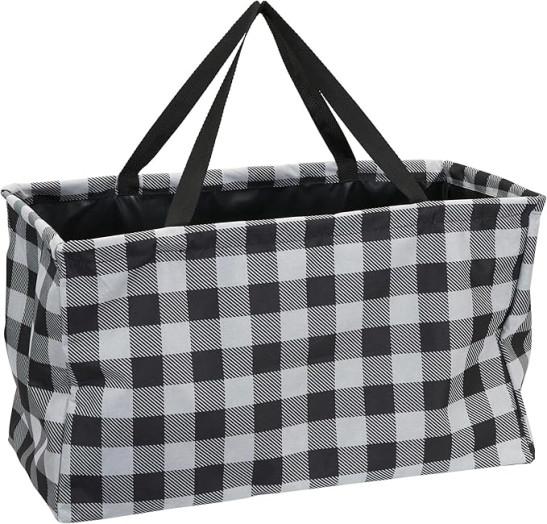 Household Essentials Krush Canvas Utility Tote | Reusable Grocery Bag | Black and White Plaid