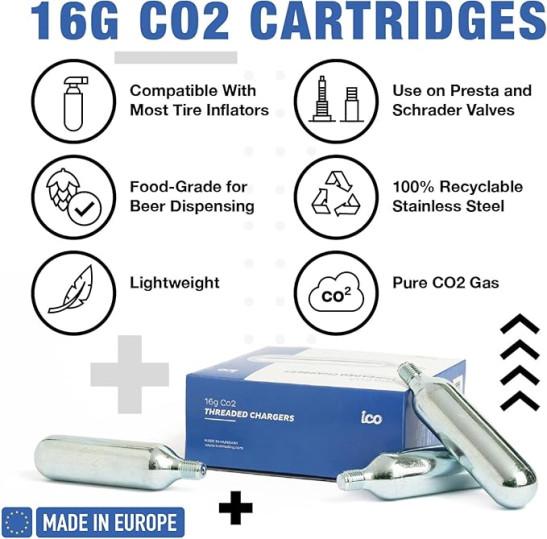 ICO CO2 cartridge 16g C02 Cartridges Threaded For Threaded CO2 Inflator Cycling