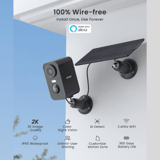 ieGeek 2K Solar Security Camera Outdoor Wireless with Color Night Vision, Battery CCTV Camera Systems, WiFi Outdoor Camera Home Security Camera, Siren Floodlight Alarm,Motion Detection,Work with Alexa