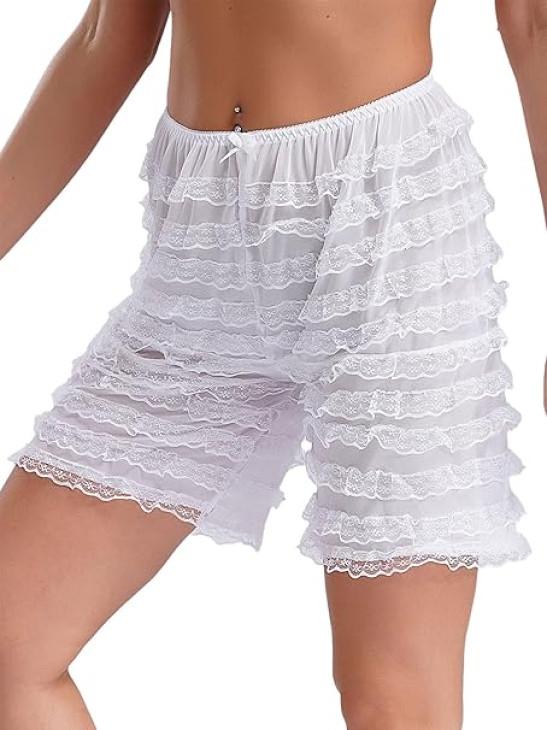iiniim Women Lolita Bloomers Mesh Ruffles Pumpkin Panties Bottom Lace Trim Layered High Waist Shorts