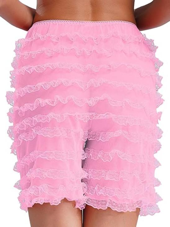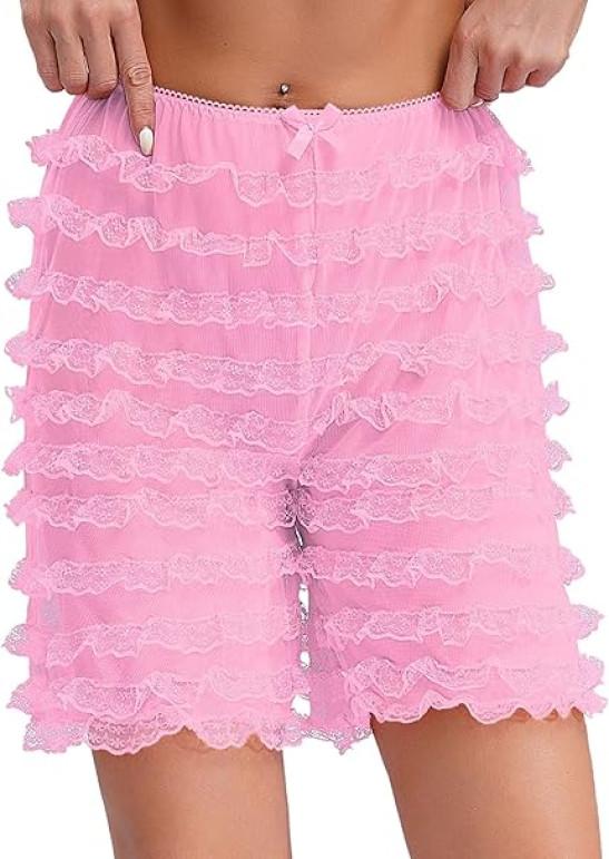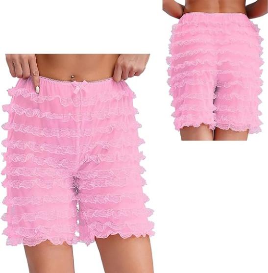 iiniim Women Lolita Bloomers Mesh Ruffles Pumpkin Panties Bottom Lace Trim Layered High Waist Shorts