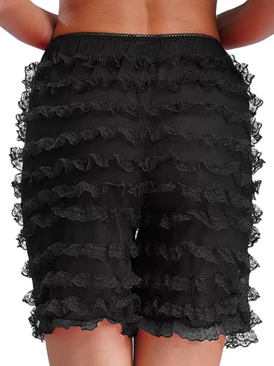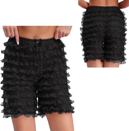 iiniim Women Lolita Bloomers Mesh Ruffles Pumpkin Panties Bottom Lace Trim Layered High Waist Shorts