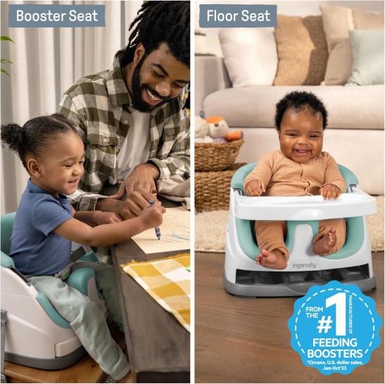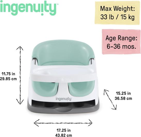 Ingenuity, Baby Base 2-in-1 Seat, Mist, Booster Chair, Dining and Feeding Seat for Toddlers, Easy to Clean with Removable and Self-Storing Tray, Ages 6 Months+